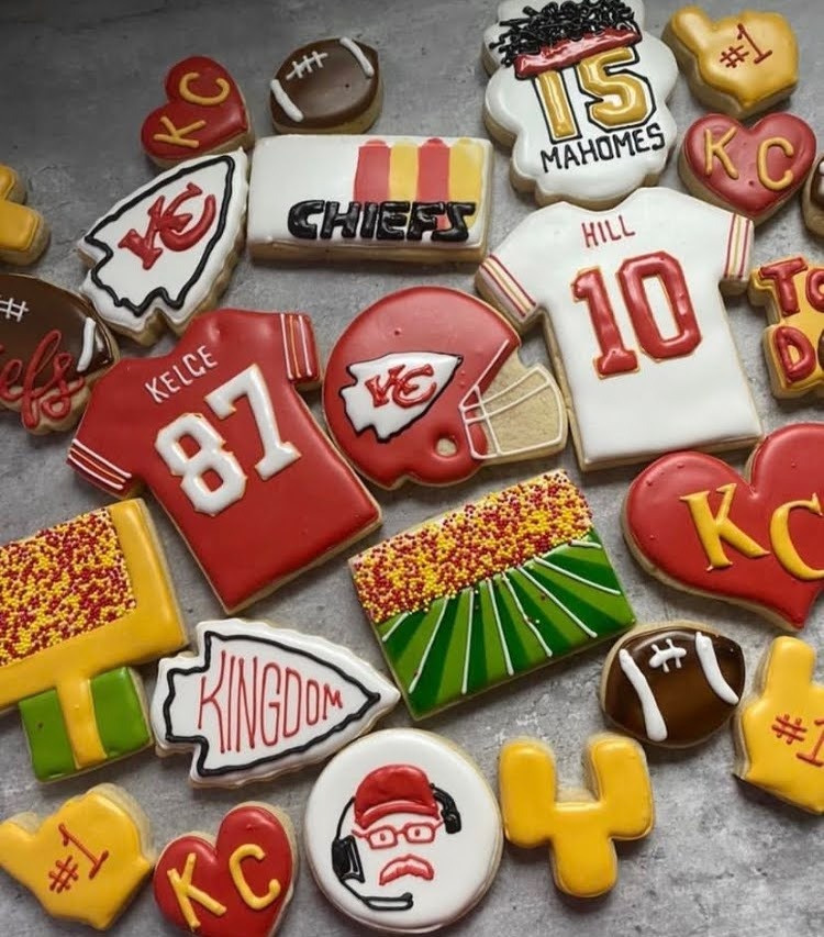 Sugar cookies for every and any occasion; from holidays to just because, from engagements to weddings, and from babies to Sports! We even make CHIEFS cookies!
